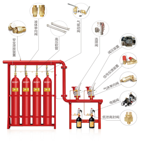 IG541是一種混合氣體IG541滅火劑由52%氮、40%氬、8%二氧化碳三種氣體組成,是一種無色、無味、無毒、不導電的氣體,臭氧耗損潛能值ODP=0,溫室效應潛能值GWP=0,其在大氣中存留的時間很短,是一種綠色環保型滅火劑。